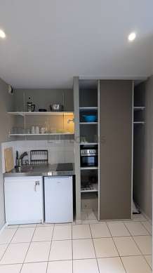 Questo appartamento dispone di una magnifica cucina con del piastrelle al suolo e tutto l'equipaggiamento essenziale per la vita quotidiana : piani di cottura, frigorifero, microonde multifunzione, armadio.