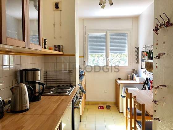 Questo appartamento dispone di una cucina con del piastrelle al suolo e tutto l'equipaggiamento necessario per la vita quotidiana : piani di cottura, frigorifero, congelatore, forno, bollitore elettrico, caffettiera, tavola da pranzo, armadio, stoviglie, 1 sedia (e).