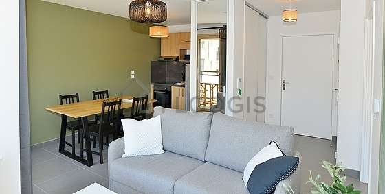 Questo appartamento é composto di un salone delle finestras anti-rumore. Questo salone é ammobiliato e equipaggiato per rendere il tuo soggiorno piacevole : divano, tavola da pranzo, tavolino, 1 sedia (e).