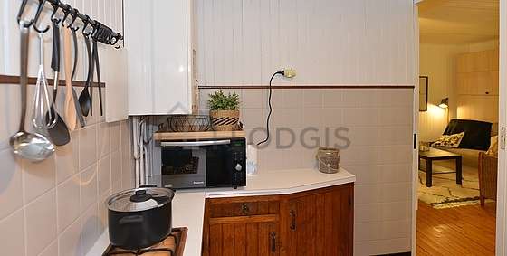 Questo appartamento dispone di una cucina e tutto l'equipaggiamento essenziale per la vita quotidiana : piani di cottura, frigorifero, congelatore, forno, forno microonde, cappa di aspirazione, tostapane, bollitore elettrico, caffettiera, armadio, stoviglie.