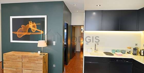 Questo appartamento dispone di una cucina e tutto l'equipaggiamento indispensabile per la vita quotidiana : piani di cottura, frigorifero, congelatore, forno, forno microonde, cappa di aspirazione, bollitore elettrico, armadio, stoviglie.