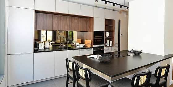 Questo appartamento dispone di una cucina adiacent al soggiorno e tutto l'equipaggiamento necessario per la vita quotidiana : piani di cottura, frigorifero, congelatore, forno, forno microonde, cappa di aspirazione, tostapane, bollitore elettrico, caffettiera, armadio, stoviglie, 1 sedia (e), bar.