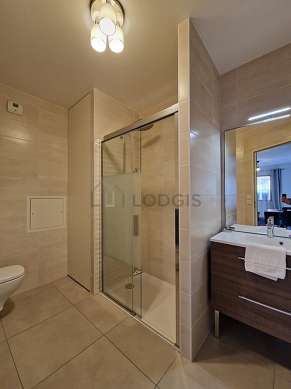 Questo appartamento é equipaggiato di un bagno. Questo bagno é dotato di tutto il necessario per il tuo benessere quotidiano : doccia, radiatore porta asciugamani. Il WC é integrato nel bagno