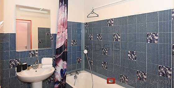 Questo appartamento é equipaggiato di un bagno. Questo bagno é dotato di tutto il necessario per il tuo benessere quotidiano : asciugamani da bagno, vasca da bagno, asciugacapelli, sink, mirror, towel rack, bin, radiatore porta asciugamani, curtains, ventilator. Il WC é separato dal bagno ed é situato in un locale indipendente.