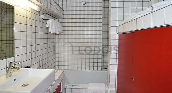Questo appartamento é equipaggiato di un bagno. Questo bagno é dotato di tutto il necessario per il tuo benessere quotidiano : asciugamani da bagno, vasca da bagno, asciugacapelli, sink, mirror, towel rack. Il WC é separato dal bagno ed é situato in un locale indipendente.