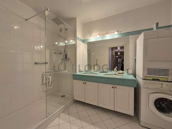 Questo appartamento é equipaggiato di un bagno. Questo bagno é dotato di tutto il necessario per il tuo benessere quotidiano : armadio, doccia, sink, radiatore porta asciugamani. Il WC é integrato nel bagno