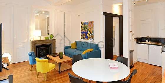 SoggiornoQuesto appartamento é composto di un salone con del parquet al suolo e delle finestras anti-rumore. Questo salone é ammobiliato e equipaggiato per rendere il tuo soggiorno piacevole : televisione, divano, tavola da pranzo, tavolino, 1 sedia (e).
