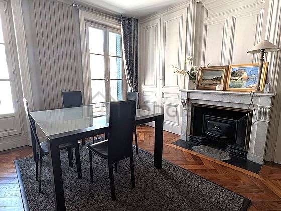 SoggiornoQuesto appartamento é composto di un salone con del parquet al suolo e delle finestras anti-rumore. Questo salone é ammobiliato e equipaggiato per rendere il tuo soggiorno piacevole : televisione, divano, tavola da pranzo, biblioteca, credenza, camino, 1 sedia (e), lamp, tv stand, painting.