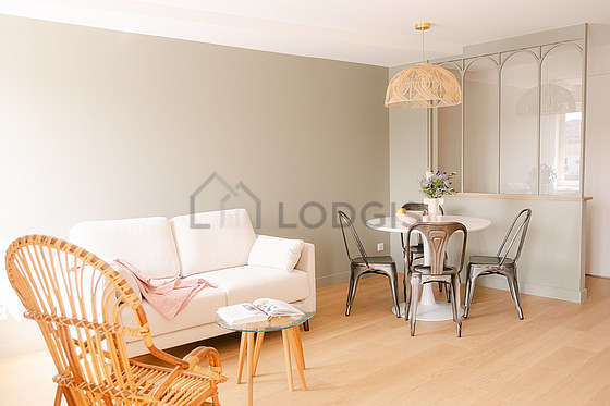 SoggiornoQuesto appartamento é composto di un salone con del parquet al suolo e delle finestras anti-rumore. Questo salone é ammobiliato e equipaggiato per rendere il tuo soggiorno piacevole : divano, tavolino, 1 sedia (e).