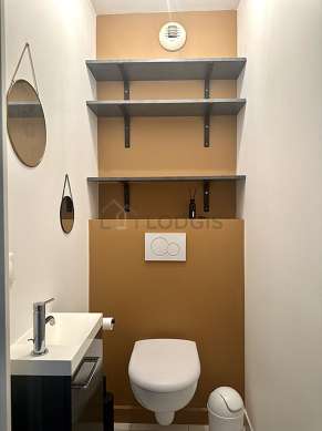 Questo appartamento é equipaggiato di un bagno. Questo bagno é dotato di tutto il necessario per il tuo benessere quotidiano : vasca da bagno, sink, radiatore porta asciugamani. Il WC é separato dal bagno ed é situato in un locale indipendente.