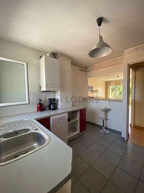 Questo appartamento dispone di una magnifica cucina con del piastrelle al suolo e tutto l'equipaggiamento necessario per la vita quotidiana : piani di cottura, frigorifero, forno, forno microonde, cappa di aspirazione, bollitore elettrico, caffettiera, stoviglie, 1 sedia (e), bar.