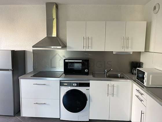 Questo appartamento dispone di una cucina e tutto l'equipaggiamento essenziale per la vita quotidiana : piani di cottura, frigorifero, congelatore, forno, forno microonde, cappa di aspirazione, armadio, stoviglie.