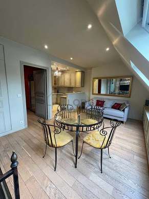Questo appartamento é composto di un attraente salone con del parquet al suolo e delle finestras anti-rumore. Questo salone calmo é ammobiliato e equipaggiato per rendere il tuo soggiorno piacevole : televisione, divano, tavola da pranzo, tavolino, guardaroba, scaffale, armadio, 4 sedia (e).