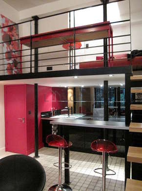 Grazie a una bella altezza del soffitto, si é potuto bella montare un soppalco in questo appartamento , offrendoti cosi un locale in più dotata de divano, scrivania, sgabello.