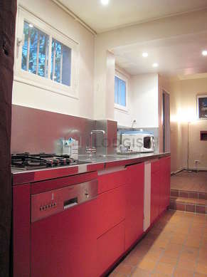 Questo appartamento dispone di una bella cucina con della coccio al suolo e tutto l'equipaggiamento necessario per la vita quotidiana : piani di cottura, frigorifero, congelatore, forno microonde, tostapane, bollitore elettrico, caffettiera, armadio, stoviglie, sgabello, bar.