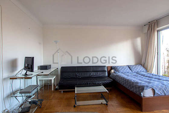 Questo appartamento é composto di un attraente salone con del parquet al suolo e delle finestras anti-rumore con balcon e vista su giardino. Questo salone molto calmo é ammobiliato e equipaggiato per rendere il tuo soggiorno piacevole : televisione, lenzuola, coperte, tavola da pranzo, tavolino, scrivania, guardaroba, armadio, 3 sedia (e), sgabello1 divano letto, 1 letto.