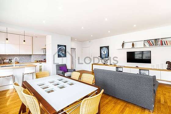 Questo appartamento é composto di un attraente salone con del parquet al suolo e delle finestras anti-rumore e vista su cortile. Questo salone molto calmo é ammobiliato e equipaggiato per rendere il tuo soggiorno piacevole : televisione, divano, 1 poltrona (e), tavola da pranzo, tavolino, biblioteca, 6 sedia (e).
