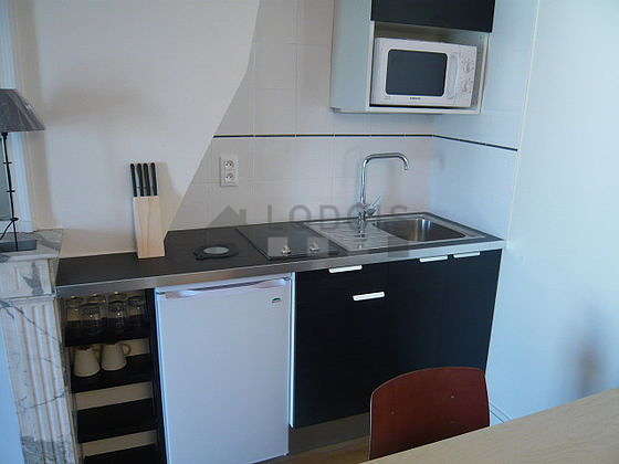 Questo appartamento dispone di una magnifica cucina con del parquet al suolo e tutto l'equipaggiamento essenziale per la vita quotidiana : piani di cottura, frigorifero, forno microonde, congelatore, armadio, stoviglie, 1 sedia (e).