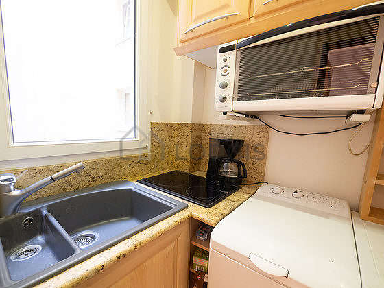 Questo appartamento dispone di una bella cucina con del piastrelle al suolo e tutto l'equipaggiamento necessario per la vita quotidiana : piani di cottura, frigorifero, congelatore, forno, forno microonde, tostapane, bollitore elettrico, caffettiera, armadio, stoviglie.