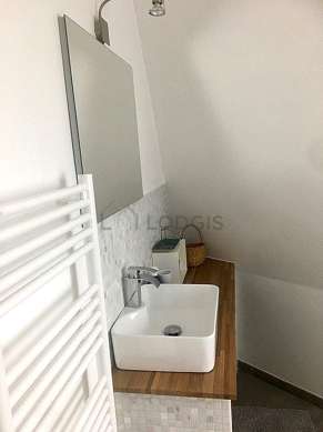 Questo appartamento é equipaggiato di un bagno. Questo bagno é dotato di tutto il necessario per il tuo benessere quotidiano : asciugamani da bagno, scaffale, armadio, vasca da bagno, asciugacapelli, radiatore porta asciugamani. Il WC é separato dal bagno ed é situato in un locale indipendente.