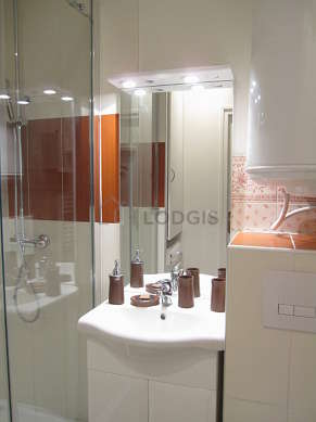 Questo appartamento dispone di una cucina con del piastrelle al suolo e tutto l'equipaggiamento necessario per la vita quotidiana : piani di cottura, frigorifero, microonde multifunzione, congelatore, cappa di aspirazione, tostapane, caffettiera, armadio, stoviglie.