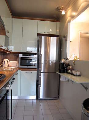 Questo appartamento dispone di una magnifica cucina adiacent al soggiorno con del piastrelle al suolo e tutto l'equipaggiamento necessario per la vita quotidiana : piani di cottura, frigorifero, congelatore, forno, microonde multifunzione, cappa di aspirazione, tostapane, bollitore elettrico, caffettiera, scaffale, armadio, stoviglie, bar.
