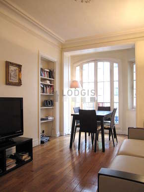 Questo appartamento é composto di un attraente salone con del parquet al suolo e delle finestras e vista su strada. Questo salone é ammobiliato e equipaggiato per rendere il tuo soggiorno piacevole : televisione, divano, tavola da pranzo, scaffale, 4 sedia (e).