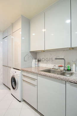 Questo appartamento dispone di una magnifica cucina con del piastrelle al suolo e tutto l'equipaggiamento necessario per la vita quotidiana : piani di cottura, frigorifero, congelatore, forno, microonde multifunzione, cappa di aspirazione, tostapane, bollitore elettrico, caffettiera, tavola da pranzo, guardaroba, scaffale, stoviglie.