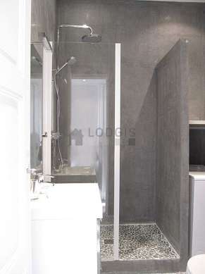 Questo appartamento é equipaggiato di un bagno piacevole e chiaro. Questo bagno é dotato di tutto il necessario per il tuo benessere quotidiano : asciugamani da bagno, scaffale, armadio, doccia. Il WC é integrato nel bagno