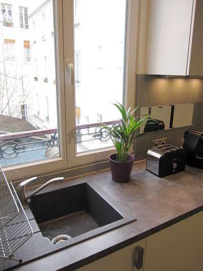 Questo appartamento dispone di una magnifica cucina con del parquet al suolo e tutto l'equipaggiamento essenziale per la vita quotidiana : piani di cottura, frigorifero, congelatore, microonde multifunzione, cappa di aspirazione, tostapane, bollitore elettrico, caffettiera, armadio, stoviglie.