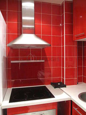 Questo appartamento dispone di una bella cucina con del piastrelle al suolo e tutto l'equipaggiamento essenziale per la vita quotidiana : piani di cottura, frigorifero, congelatore, forno, forno microonde, cappa di aspirazione, tostapane, armadio, stoviglie.
