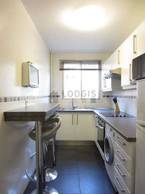 Questo appartamento dispone di una magnifica cucina con del piastrelle al suolo e tutto l'equipaggiamento indispensabile per la vita quotidiana : piani di cottura, frigorifero, congelatore, forno, forno microonde, cappa di aspirazione, tostapane, bollitore elettrico, caffettiera, armadio, stoviglie, sgabello, bar.