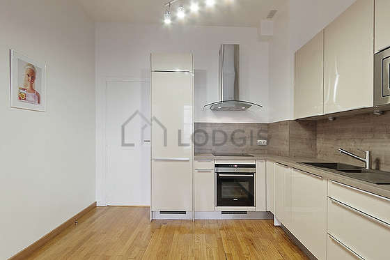 Questo appartamento dispone di una magnifica cucina con del parquet al suolo e tutto l'equipaggiamento indispensabile per la vita quotidiana : piani di cottura, frigorifero, congelatore, forno, forno microonde, cappa di aspirazione, tostapane, bollitore elettrico, caffettiera, scaffale, stoviglie.