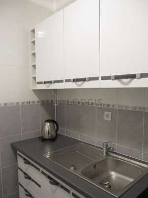 Questo appartamento dispone di una bella cucina con del piastrelle al suolo e tutto l'equipaggiamento essenziale per la vita quotidiana : piani di cottura, frigorifero, congelatore, forno, forno microonde, cappa di aspirazione, bollitore elettrico, caffettiera, stoviglie.
