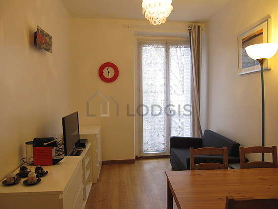Questo appartamento é composto di un attraente salone con del parquet al suolo e delle finestras anti-rumore e vista su strada. Questo salone calmo é ammobiliato e equipaggiato per rendere il tuo soggiorno piacevole : tavola da pranzo, tavolino, scaffale, como', 4 sedia (e)1 divano letto.