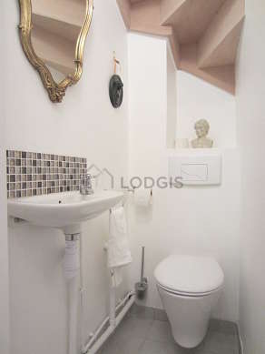 Questo appartamento é equipaggiato di un bagno piacevole with finestras anti-rumore. Questo bagno é dotato di tutto il necessario per il tuo benessere quotidiano : asciugamani da bagno, scaffale, armadio, vasca da bagno, doccia, asciugacapelli, radiatore porta asciugamani. Il WC é integrato nel bagno