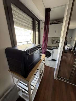 Questo appartamento é composto di un attraente salone con del parquet al suolo e delle finestras anti-rumore con balcon e vista su cortile. Questo salone molto calmo é ammobiliato e equipaggiato per rendere il tuo soggiorno piacevole : televisione, lenzuola, coperte, divano, tavolino, scaffale, como'1 letto.