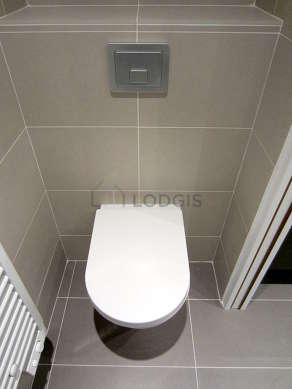 Questo appartamento é equipaggiato di un bagno piacevole. Questo bagno é dotato di tutto il necessario per il tuo benessere quotidiano : asciugamani da bagno, scaffale, armadio, doccia, asciugacapelli, radiatore porta asciugamani. Il WC é integrato nel bagno