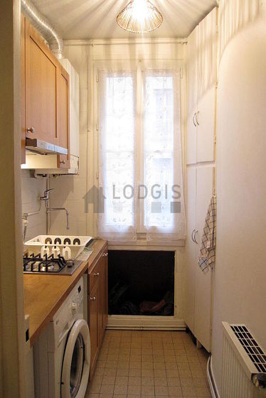 Questo appartamento dispone di una bella cucina con del piastrelle al suolo e tutto l'equipaggiamento necessario per la vita quotidiana : piani di cottura, frigorifero, microonde multifunzione, congelatore, cappa di aspirazione, tostapane, bollitore elettrico, caffettiera, armadio, stoviglie.