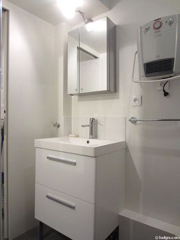 Questo appartamento é composto di un piacevole salone con del parquet al suolo e delle finestras anti-rumore e vista su strada. Questo salone calmo é ammobiliato e equipaggiato per rendere il tuo soggiorno piacevole : televisione, lenzuola, coperte, divano, tavola da pranzo, tavolino, guardaroba, scaffale, armadio, armadio, 2 sedia (e)1 letto mezzanino.