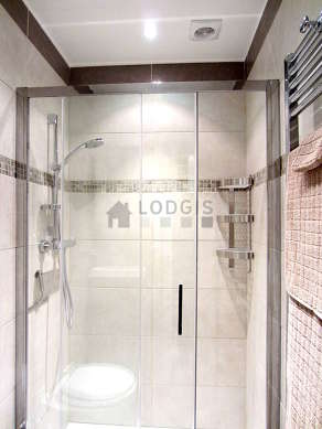 Questo appartamento é equipaggiato di un bagno magnifica e chiaro. Questo bagno é dotato di tutto il necessario per il tuo benessere quotidiano : asciugamani da bagno, scaffale, armadio, doccia, asciugacapelli, pompa d'evacuazione, radiatore porta asciugamani. Il WC é integrato nel bagno