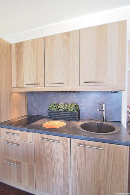 Questo appartamento dispone di una bella cucina con del parquet al suolo e tutto l'equipaggiamento necessario per la vita quotidiana : piani di cottura, frigorifero, forno, forno microonde, congelatore, cappa di aspirazione, tostapane, bollitore elettrico, caffettiera, armadio, stoviglie.