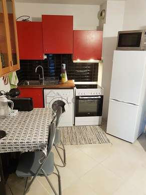 Questo appartamento dispone di una magnifica cucina con del parquet al suolo e tutto l'equipaggiamento essenziale per la vita quotidiana : piani di cottura, frigorifero, microonde multifunzione, congelatore, tostapane, bollitore elettrico, caffettiera, credenza, stoviglie.