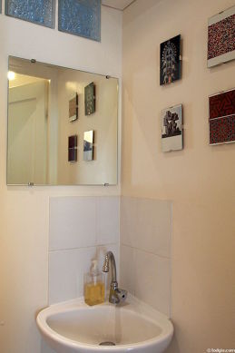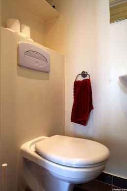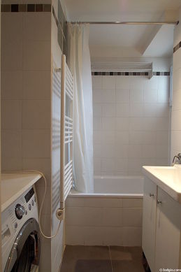 Questo appartamento é equipaggiato di un bagno piacevole with finestras anti-rumore. Questo bagno é dotato di tutto il necessario per il tuo benessere quotidiano : asciugamani da bagno, scaffale, armadio, vasca da bagno, asciugacapelli, radiatore porta asciugamani. Il WC é separato dal bagno ed é situato in un locale indipendente.