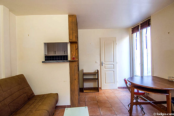 Questo appartamento é composto di un piacevole salone con del piastrelle al suolo e delle finestras anti-rumore e vista su cortile. Questo salone molto calmo é ammobiliato e equipaggiato per rendere il tuo soggiorno piacevole : tavola da pranzo, tavolino, guardaroba, armadio, 2 sedia (e)1 divano letto.