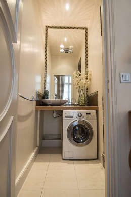 Questo appartamento é equipaggiato di un bagno piacevole e chiaro. Questo bagno é dotato di tutto il necessario per il tuo benessere quotidiano : asciugamani da bagno, vasca da bagno, asciugacapelli, radiatore porta asciugamani. Il WC é integrato nel bagno