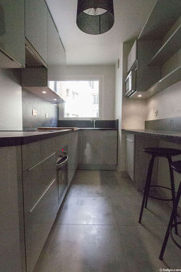 Questo appartamento dispone di una bella cucina con del piastrelle al suolo e tutto l'equipaggiamento necessario per la vita quotidiana : piani di cottura, frigorifero, congelatore, forno, forno microonde, cappa di aspirazione, tostapane, bollitore elettrico, caffettiera, armadio, stoviglie, sgabello, bar.