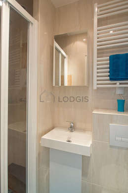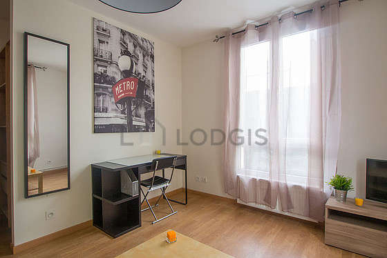 Di un magnifico salone con del parquet al suolo e delle finestras anti-rumore e vista su cortile. Questo salone calmo é ammobiliato e equipaggiato per rendere il tuo soggiorno piacevole : televisione, lenzuola, coperte, tavolino, scrivania, guardaroba, scaffale, 1 sedia (e)1 divano letto.