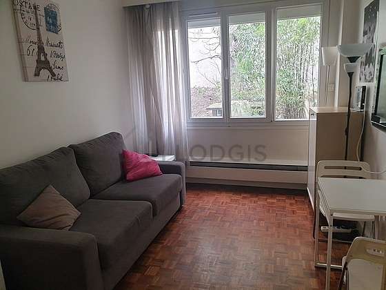 Questo appartamento é composto di un attraente salone con del parquet al suolo vista su giardino. Questo salone molto calmo é ammobiliato e equipaggiato per rendere il tuo soggiorno piacevole : televisione, lenzuola, coperte, tavola da pranzo, como', armadio, 2 sedia (e)1 divano letto.