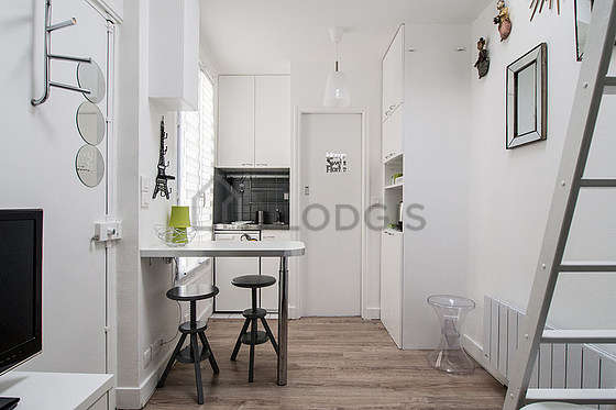Questo appartamento é composto di un bello salone con del parquet al suolo e delle finestras anti-rumore e vista su cortile. Questo salone molto calmo é ammobiliato e equipaggiato per rendere il tuo soggiorno piacevole : televisione, lenzuola, coperte, divano, tavolino, guardaroba, scaffale, armadio, 1 sedia (e), sgabello, bar1 materasso.